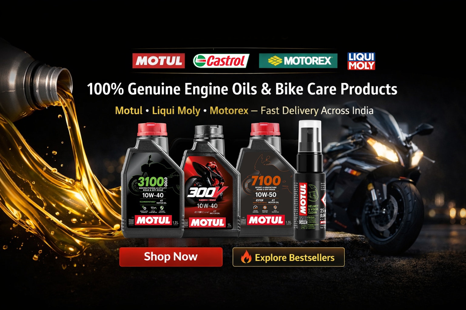 Liqui Moly Motorbike Additive Combo — 4T Shooter 80ml + Engine Flush 80ml + MoS₂ Shooter 20ml